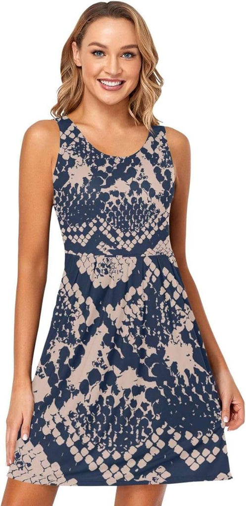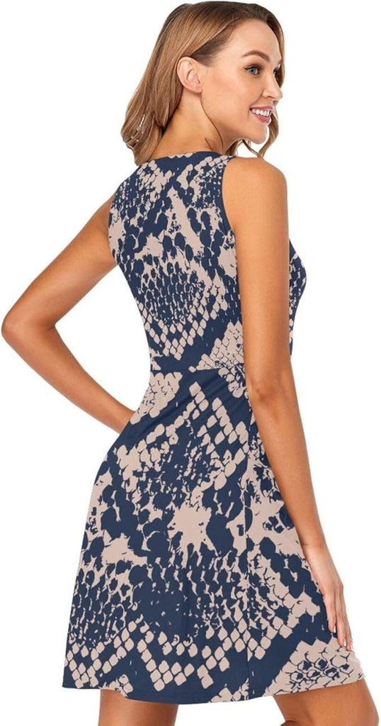 The Blue Snake Dress stands out with its rich blue tones and striking snake-inspired pattern, creating a look that is both bold and sophisticated. The cool color palette adds depth and calm elegance, while the textured design enhances character, making this dress ideal for statement outfits, daytime events, or refined evenings.