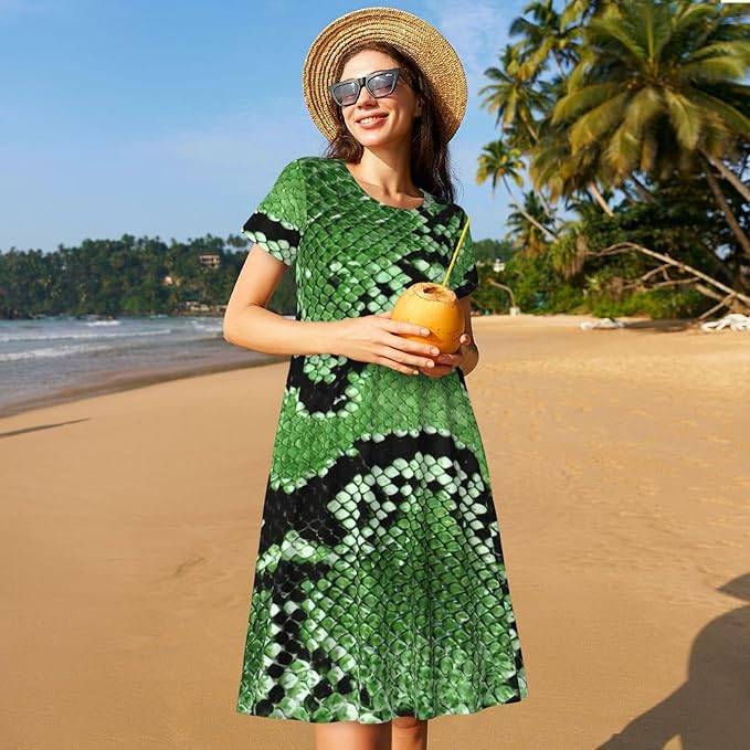 • Embrace Bold Natural Style with the Green Python Dress