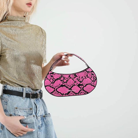 The Serpent Rose Bag combines a snakeskin-inspired design with a delicate pink hue, bringing a feminine and trendy touch to your accessories. Perfect for those who want to combine elegance and boldness with softness, this bag combines style and everyday practicality.