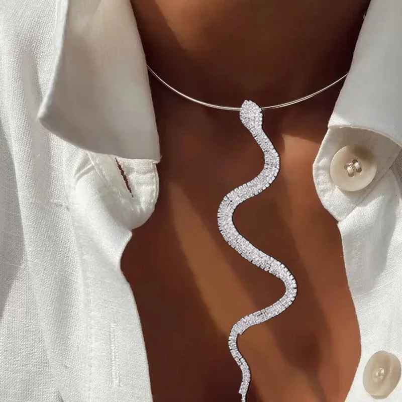 Offer Shine and Elegance with the Rhinestone Snake Necklace