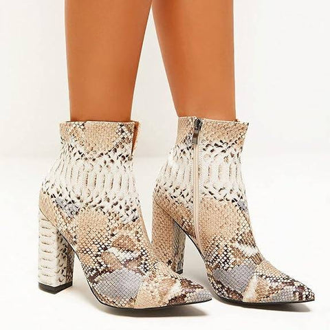 The Ankle White Snake Boots stand out with their crisp white finish and subtle snake-inspired texture, delivering a fresh and confident look. Their ankle-height silhouette adds a modern touch, while the textured design brings depth and character, making them perfect for urban, chic, or contemporary outfits.