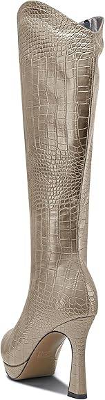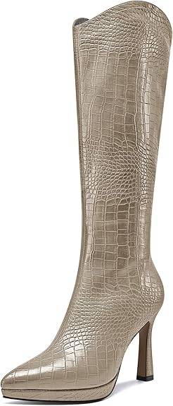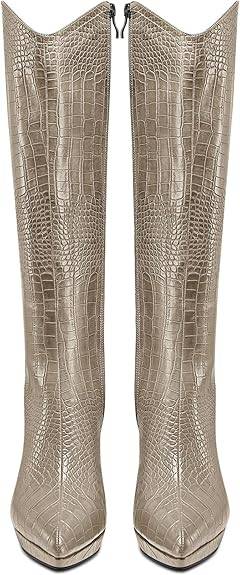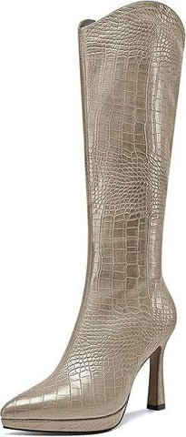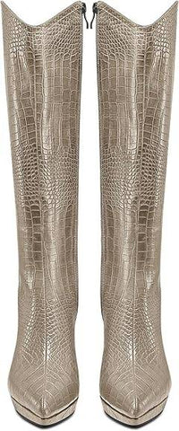 The Beige Knee High Python Boots stand out with their soft beige tones and striking python-inspired texture, delivering a look that is both elegant and confident. The knee-high silhouette enhances presence and sophistication, while the detailed pattern adds depth and character, making these boots ideal for fashion-forward, urban, or refined statement looks.